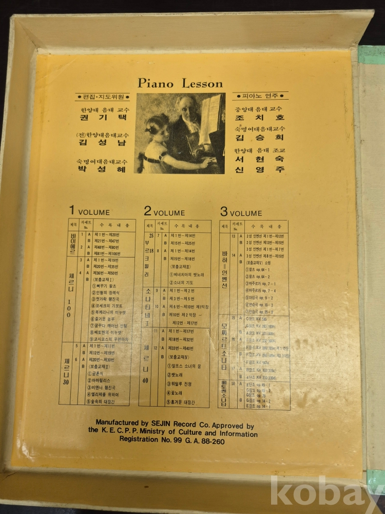 1970-80년대 세진레코드사 피아노 명곡 카세트 테이프 바이엘 체르니 100번 엘리제를 위하여 결혼행진곡등 명곡41 세트 25*31*4