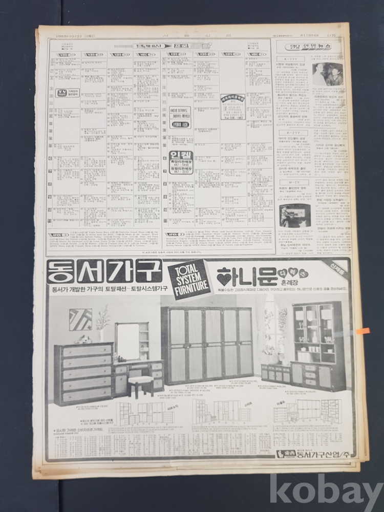 **** 1983.10.02(서울신문)/동서가구산업 하니문혼례장 광고포함/약 12면