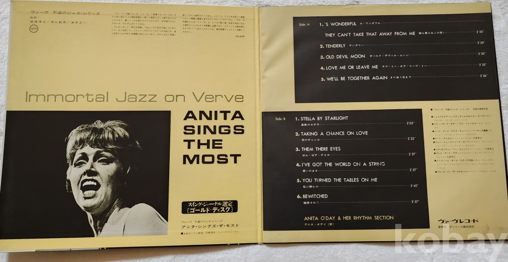 이 음반은 재즈 보컬리스트 애니타 오데이(Anita O'Day)의 앨범 'Anita Sings The Most' 일본반 LP입니 다.