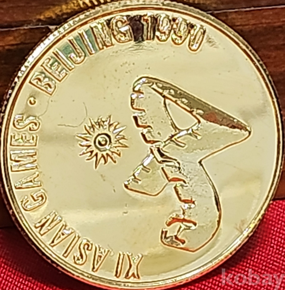 1990년 북경 아시안 게임( Asian Games)  길상(吉祥)문양 황금색 (黃金色)기념품입니다,