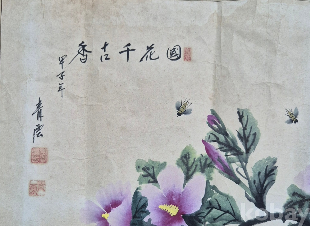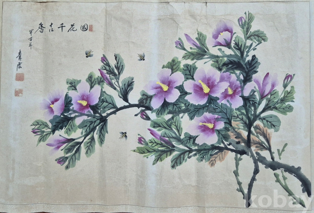 제법 오래된 잘 그려진 무궁화 그림'이오니 작품 이미지상 수결 및 낙관'등 두루 잘 참조하시고 본 작품의