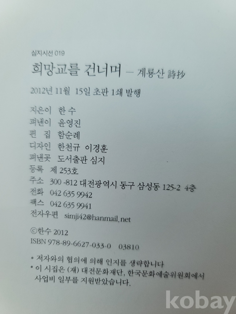 2012년 발간한 제5시집 『희망교를 건너며―계룡산 詩抄』
