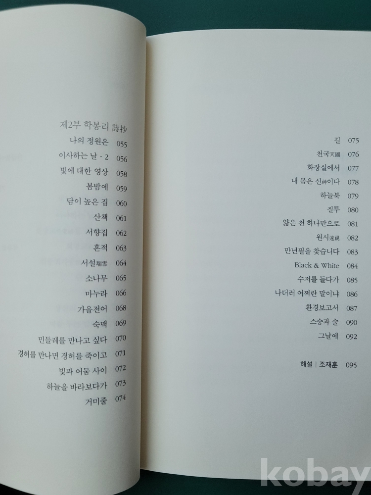 조재훈 교수(시인)의 해설. 2부 63편의 작품으로 구성.