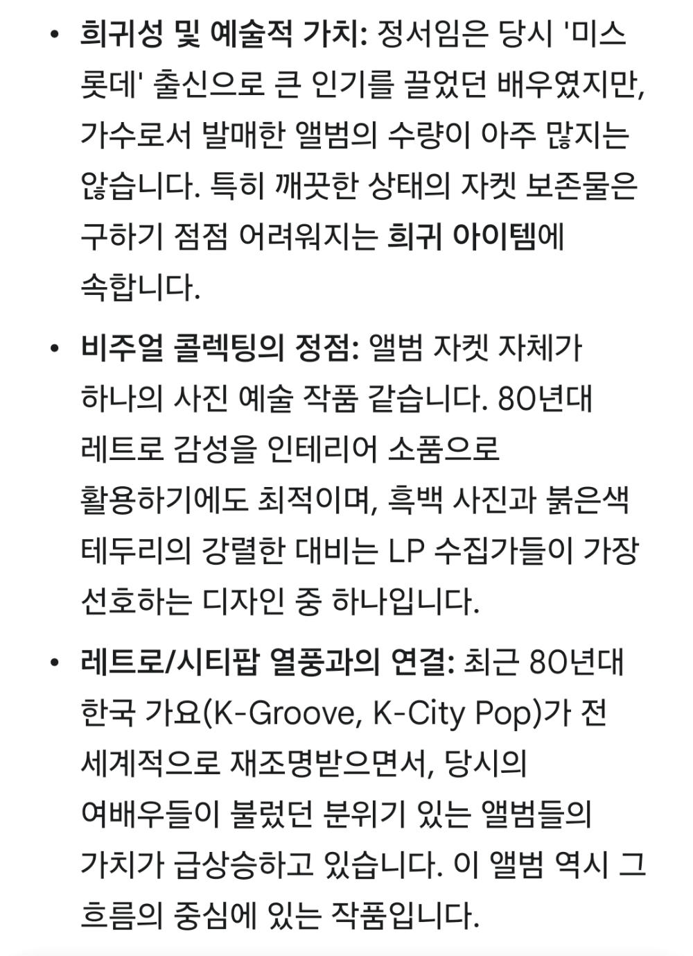 | 자켓상태 | NM : 개봉했으나 미사용, 자켓 손상 없음 | 음반상태 | NM : 개봉했으나 미사용급, 스크래치 없음 | 발매정보 | 초반 | 가사지여부 | 유 |