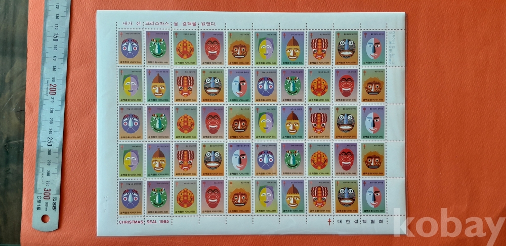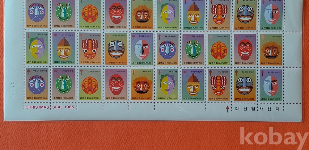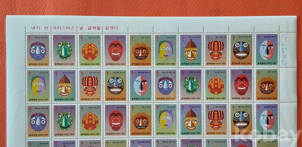 1985년 한국의 탈 크리스마스 씰 50매 전지 입니다.