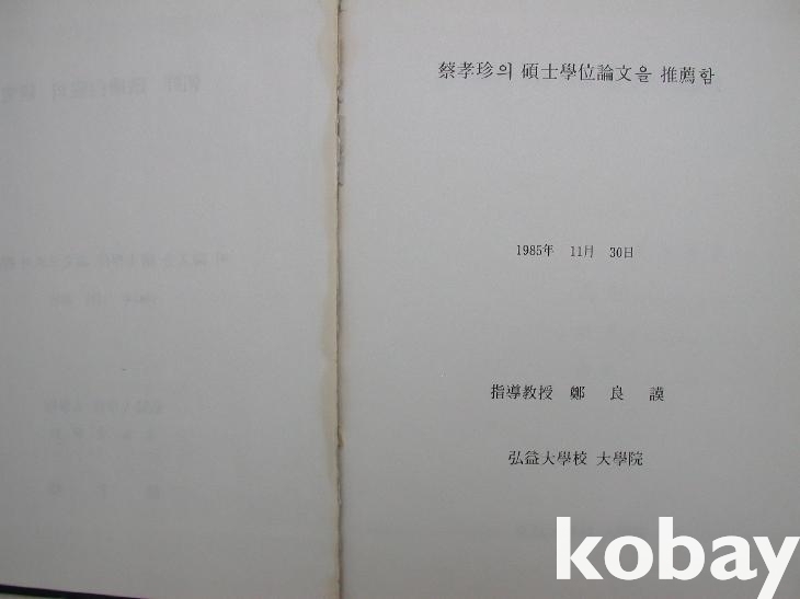 ▒ 1985년 홍익대학교대학원 미술사학과에서 발행한 채효진 석사학위청구논문 <朝鮮 鐵繪白磁의 硏究>이다.