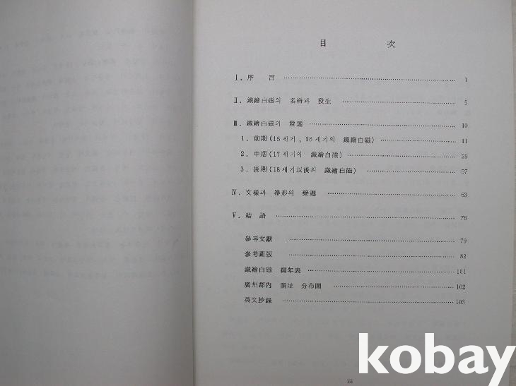 지도교수는 정양모이다. 본문은 철회백자의 발생부터 15~18세기 이후까지를 나누어 그 발달과정을 서술하였으며 문양과 기형의 변천도 살폈다. 뒤에 79번까지의 도판과 편년표, 광주군요지분포도를 수록하였다.