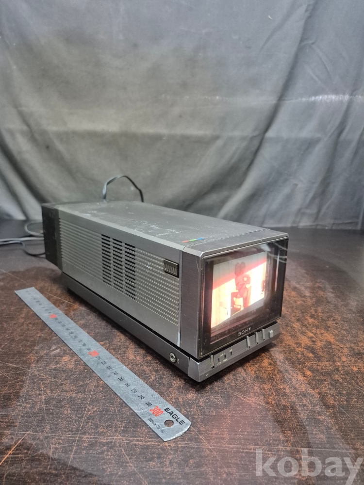 소니 캠핑용 소형 오리지널 칼라 텔레비전 AC-123 전원 110볼트 비디오 연결해 화면 확인 메이드 인 재펜 AV단자 포함 화면이 보이는 곳과 컨틀롤러 부분이 잠김부분이 정확히 잠기지않아요
