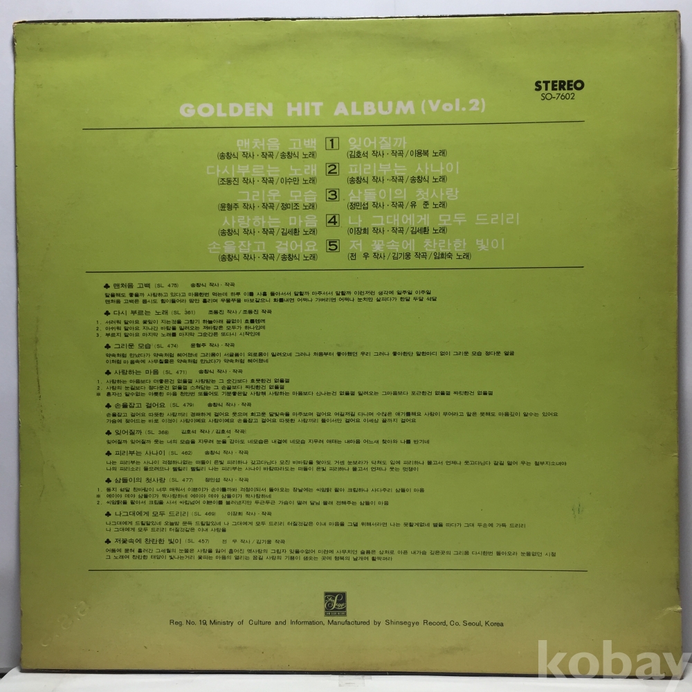LP 81,400-29 골든히트앨범 - 송창식 이수만 정미조 이용복 송창식 유준 김세환 자켓 EX 알판 EX 76 년 국내반