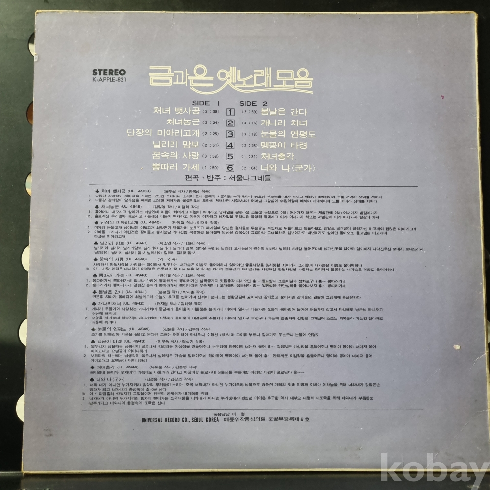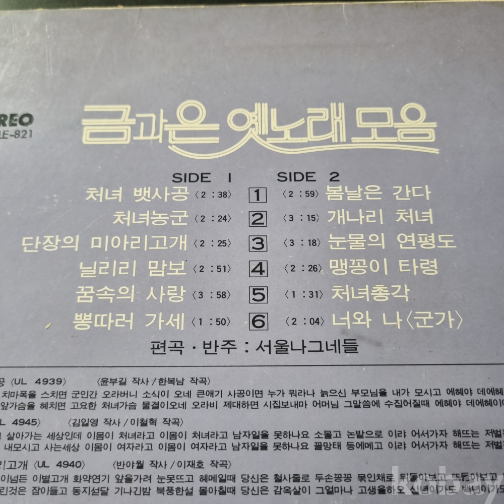 희귀음반 "금과은" 옛노래모음집 입니다.