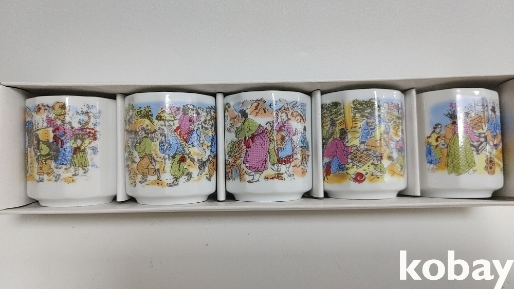 예전 민속그림이 이쁜 잔세트 입니다 2세트 신윤복등