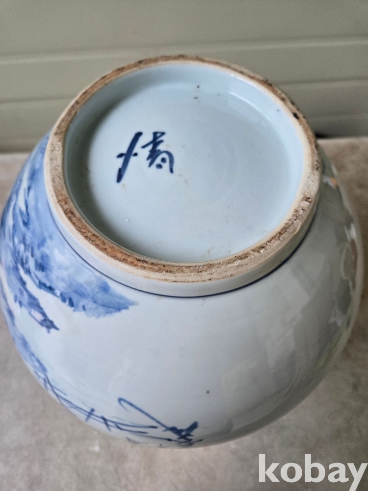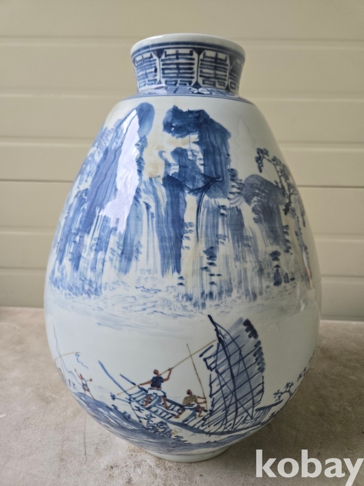 배를 타고 낚시하는 어부들 표현 고구마형 도자기 입니다.