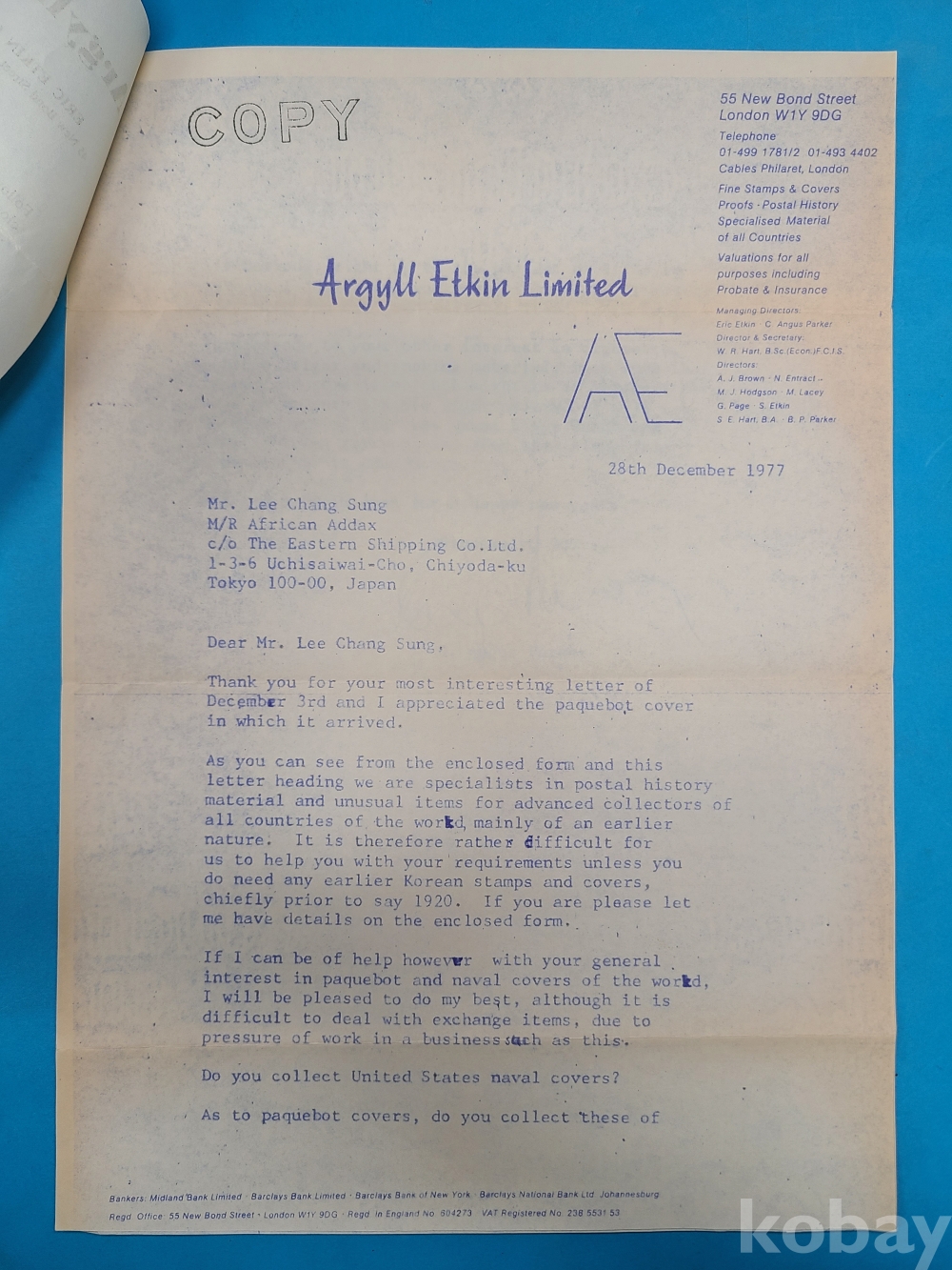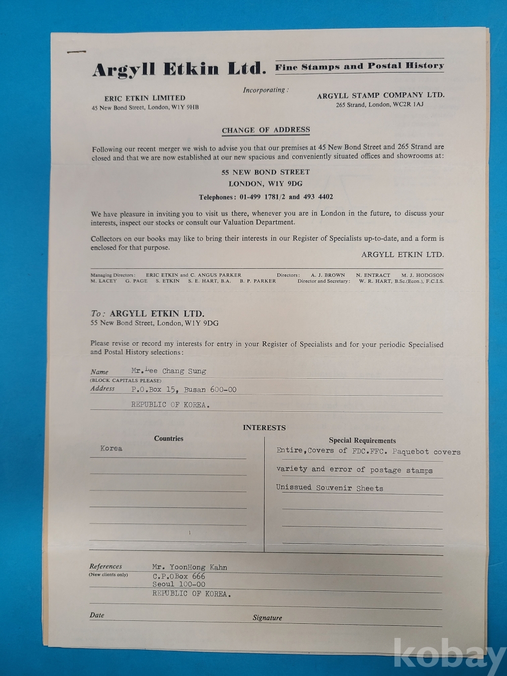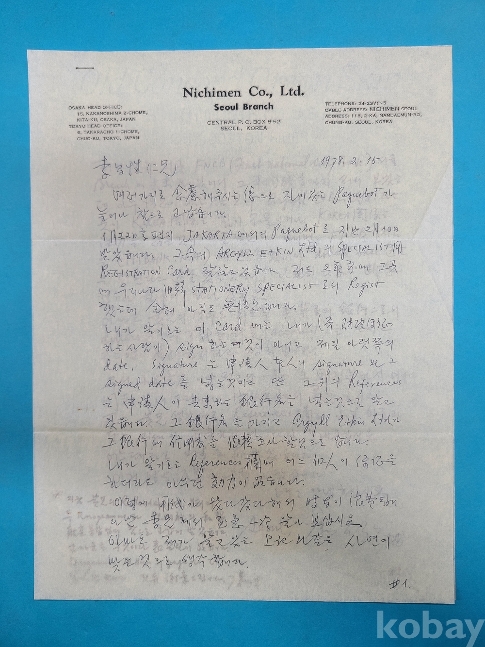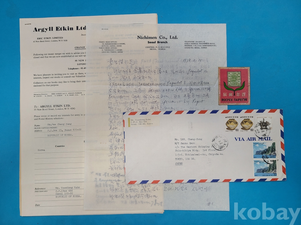 1978년 한국우취의 선구자 강훈홍님이 이창성님에게 보낸 편지(실체봉투)