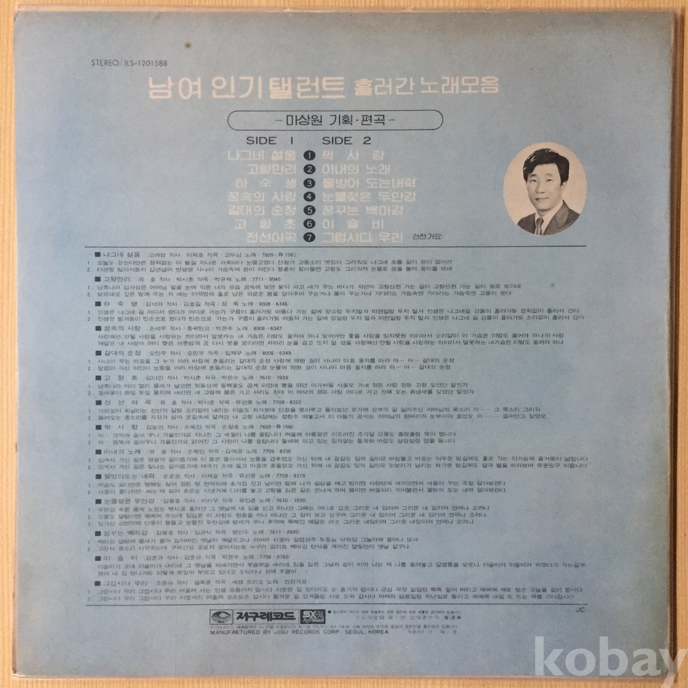 1. 나그네 설움(고두심) 2. 고향만리(박규채) 3. 하숙생(정욱) 4. 꿈속의 사랑(박은수) 5. 갈대의 순정(임채무) 6. 고향초(박은수) 7. 전선야곡(유판웅) | 1. 짝사랑(손창호) 2. 아내의 노래(김애경) 3. 물방아도는 내력(유판웅) 4. 눈물젖은 두만강(유인촌) 5. 꿈꾸는 백마강(한인수) 6. 이슬비(박은수) 7. 그럽시다 우리(건전가요)(세샘트리오) |