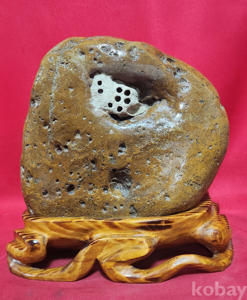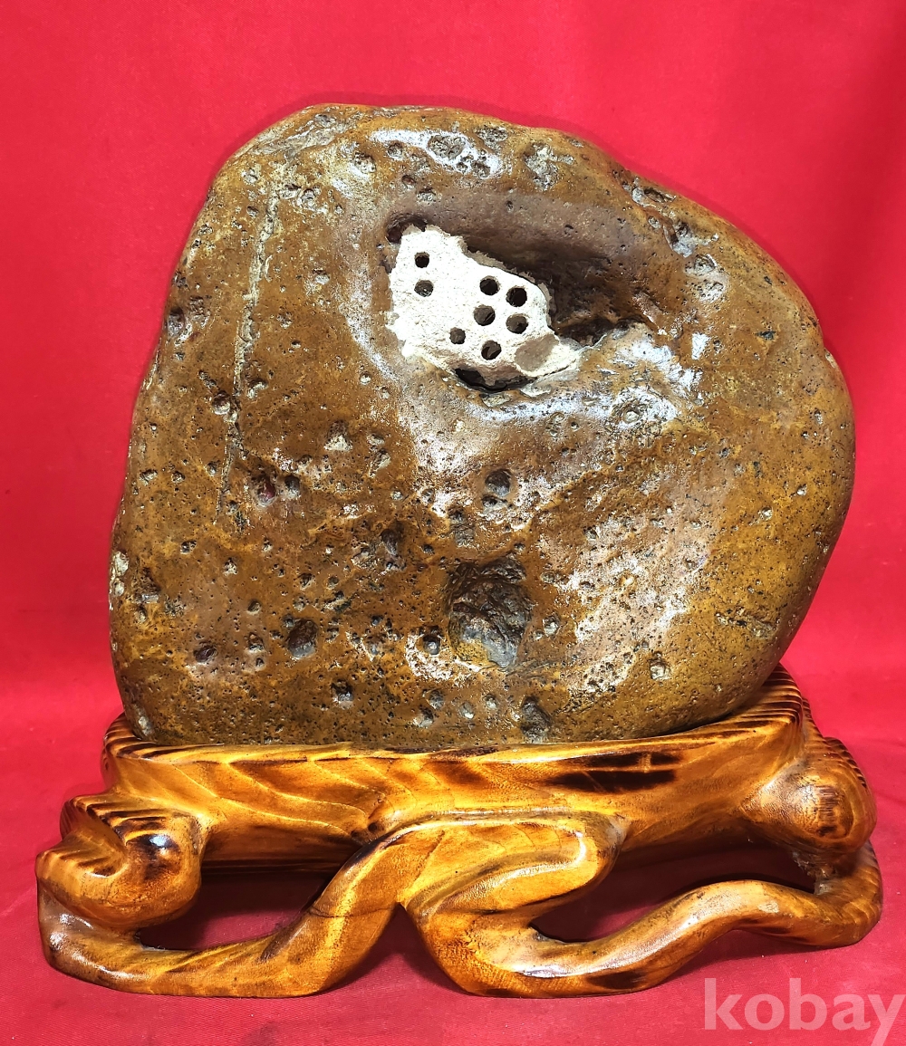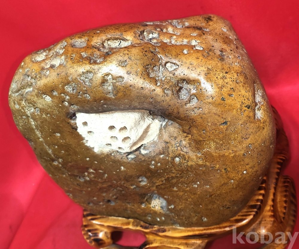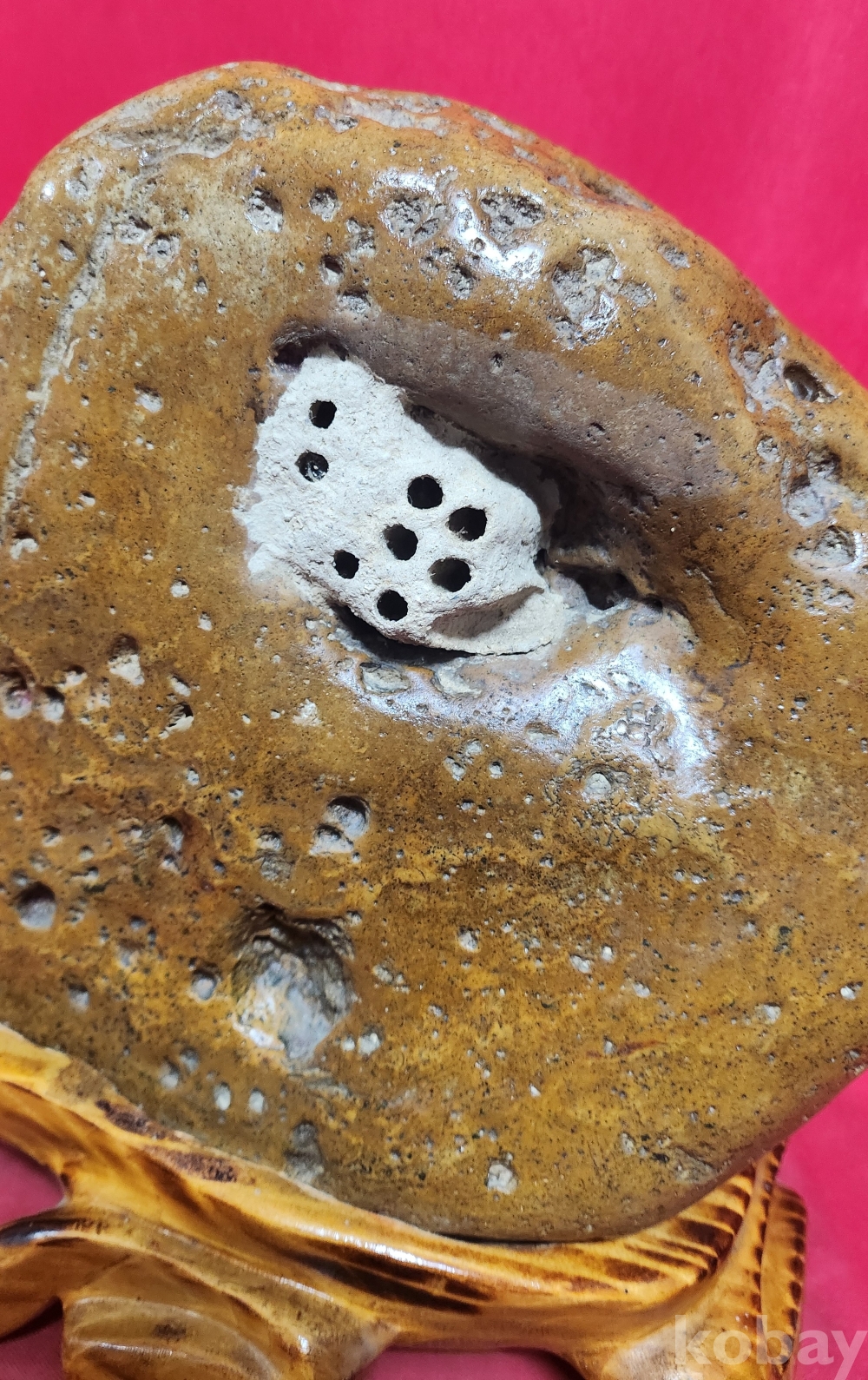 천연 호박석에 관통이 있으며 자연적으로 벌집이 생성된 명품 수석입니다,