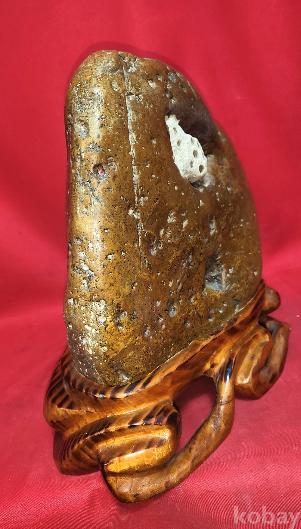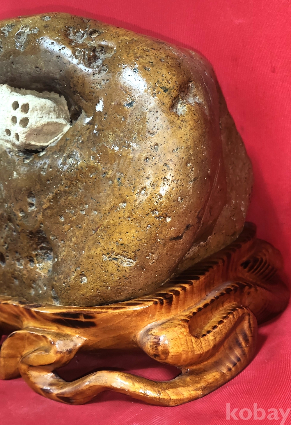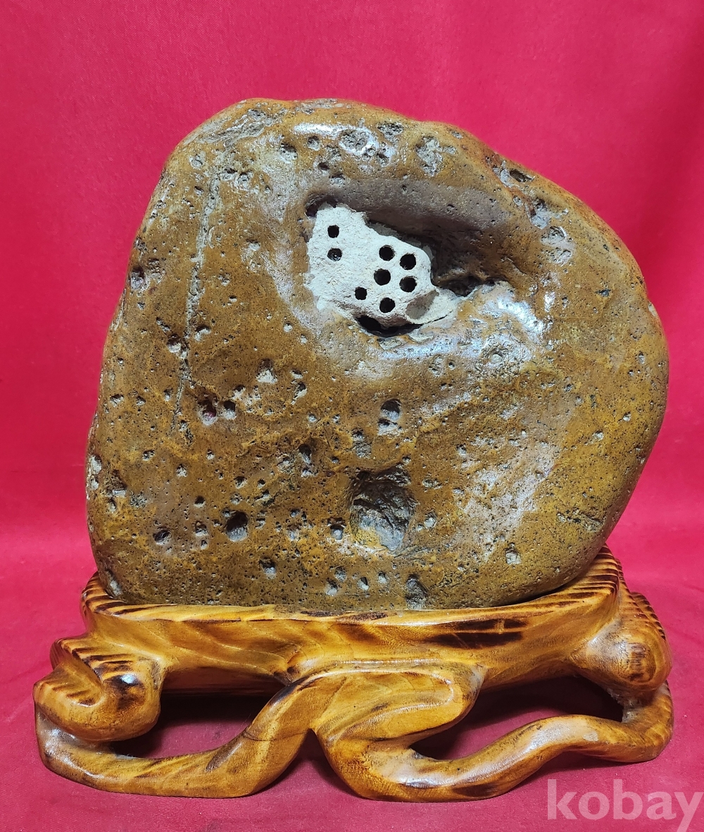 천연 호박석에 관통이 있으며 자연적으로 벌집이 생성된 명품 수석입니다,