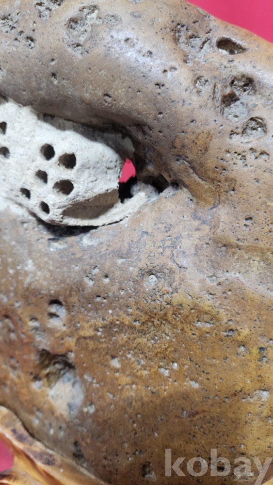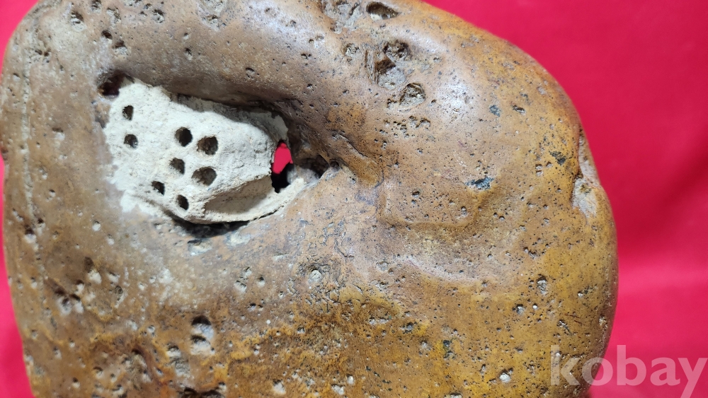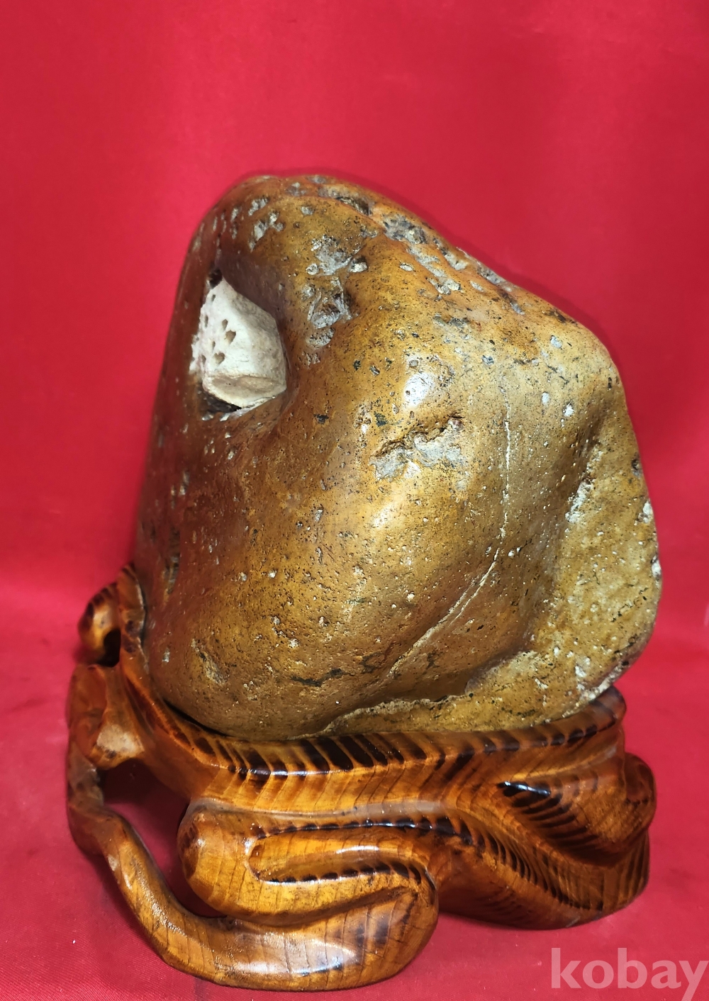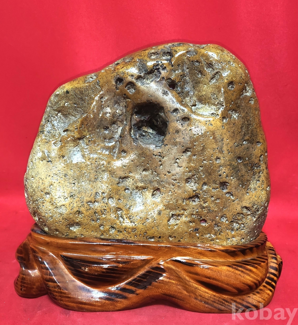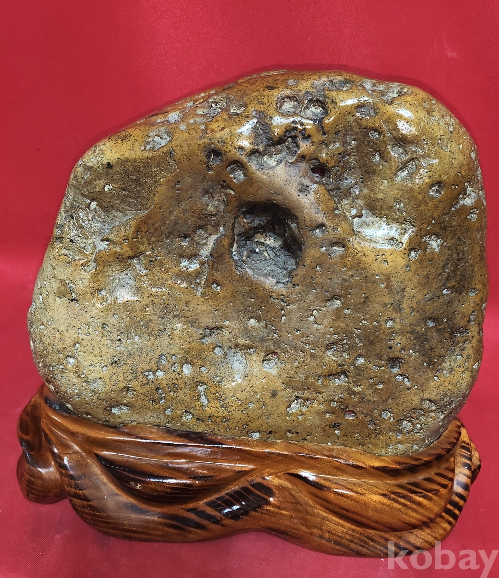 천연 호박석에 관통이 있으며 자연적으로 벌집이 생성된 명품 수석입니다,