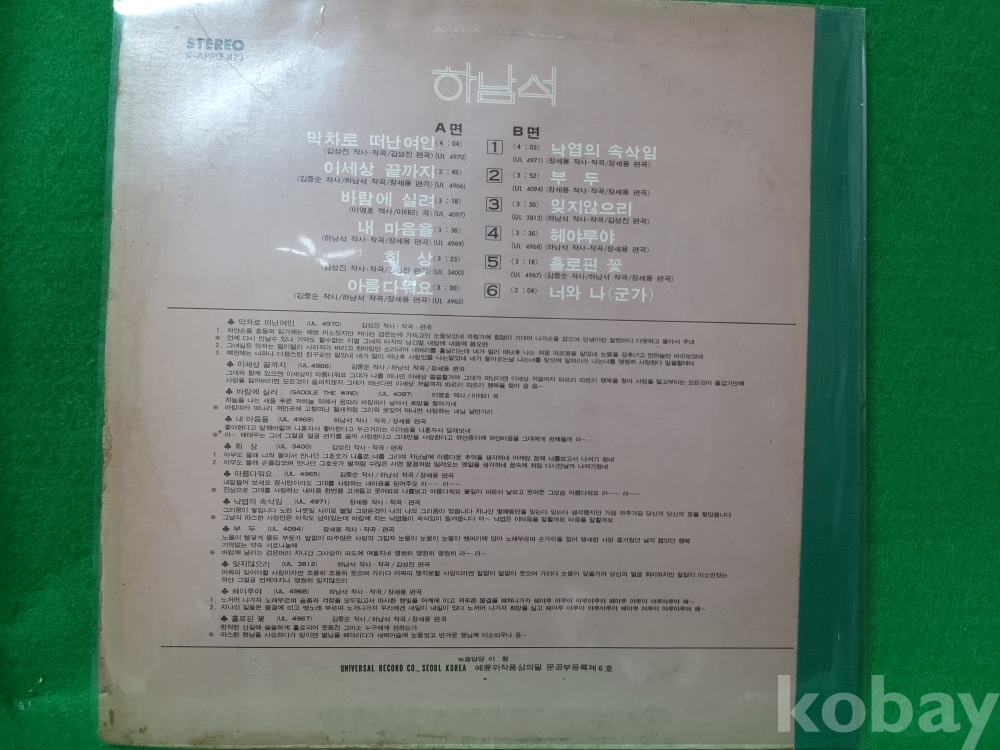 LP.레코드 = 가요 = 하남석 = 막차로 떠난 여인