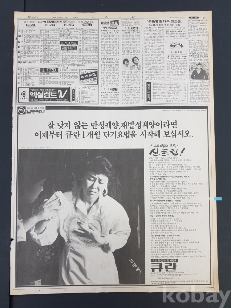 **** 1986.08.13(중앙일보)/일동제약 큐란 광고포함/약 12면