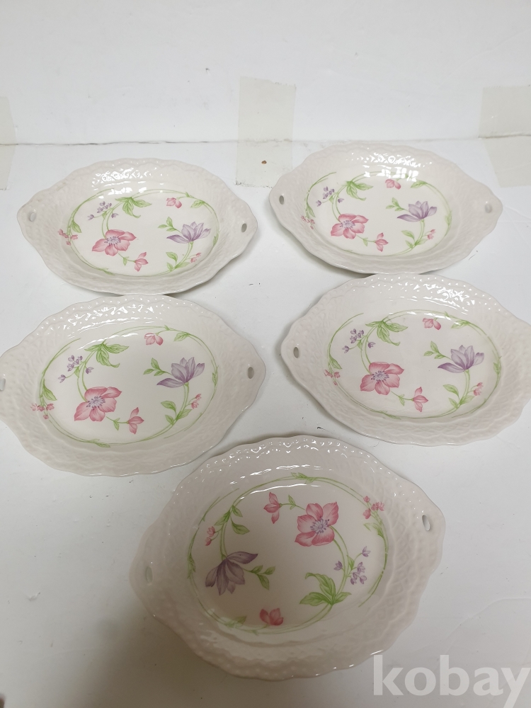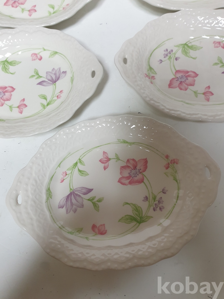 [천원경매] 12-174 일본산 타원형 접시(5개, 사용감 거의 없음, 18*13cm)