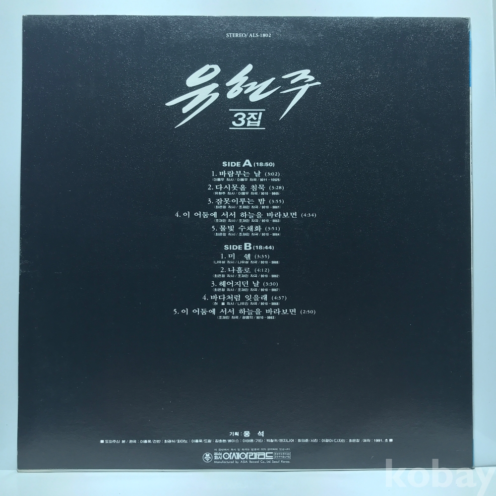 LP 10,800-56 유현주 3집 - 바람부는 날 91 아세아 자켓 EX+ 알판 EX