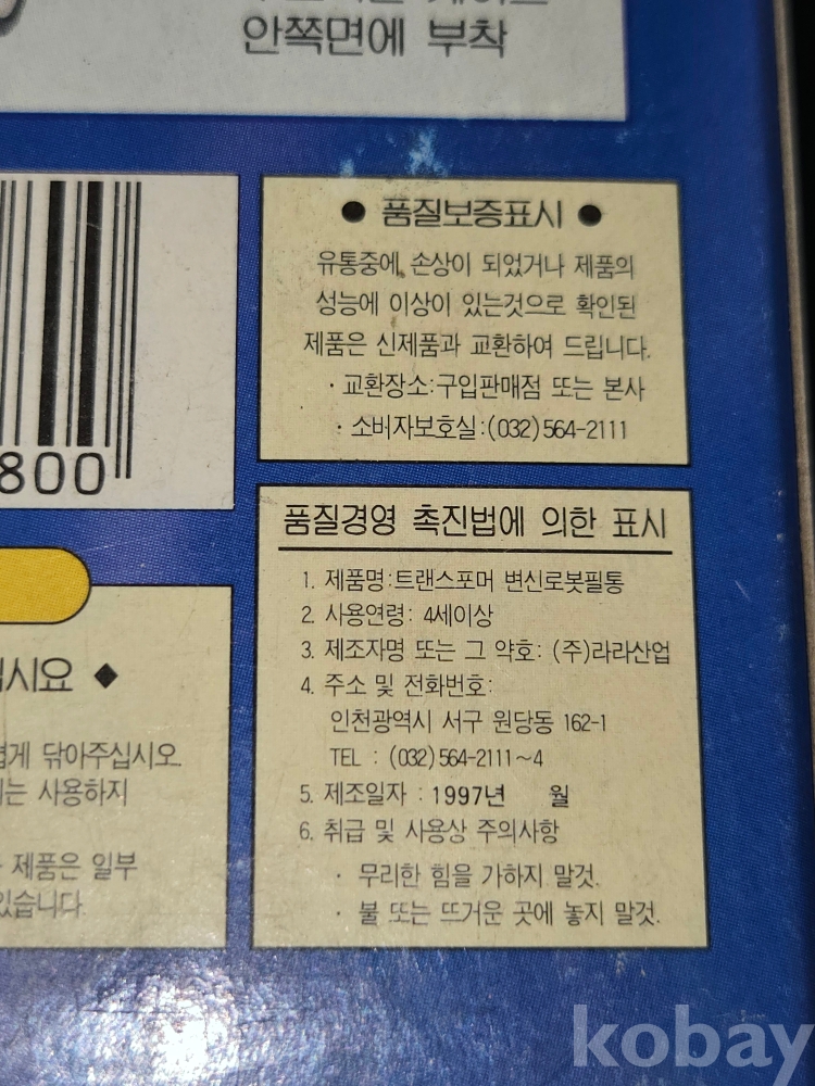 1997년 국민학교 교육자료 미사용 필통 == TV광고중 방송예정 변신로봇필통 미사용 필통