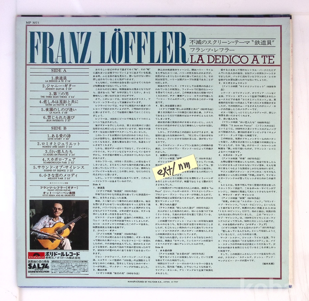 | 자켓상태 | EX : 약간의 마모, 모서리 찢김 존재 | 음반상태 | NM : 개봉했으나 미사용급, 스크래치 없음 | 발매정보 | 알수없음 | 가사지여부 | 무 |
