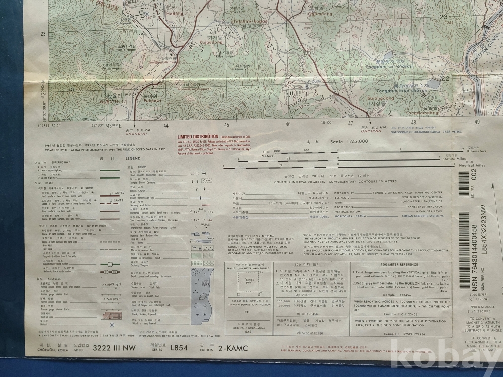 ▶ 1990년대 군사용지도 [철원]*철원군.포천군 수록/축척 1;25,000/57*73cm