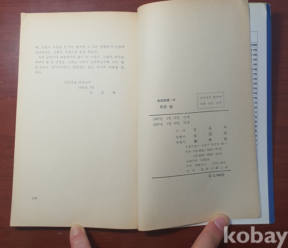 김용락 시집,창작과 비평사,1987년 초판,상태는 양호 깨끗한 시집