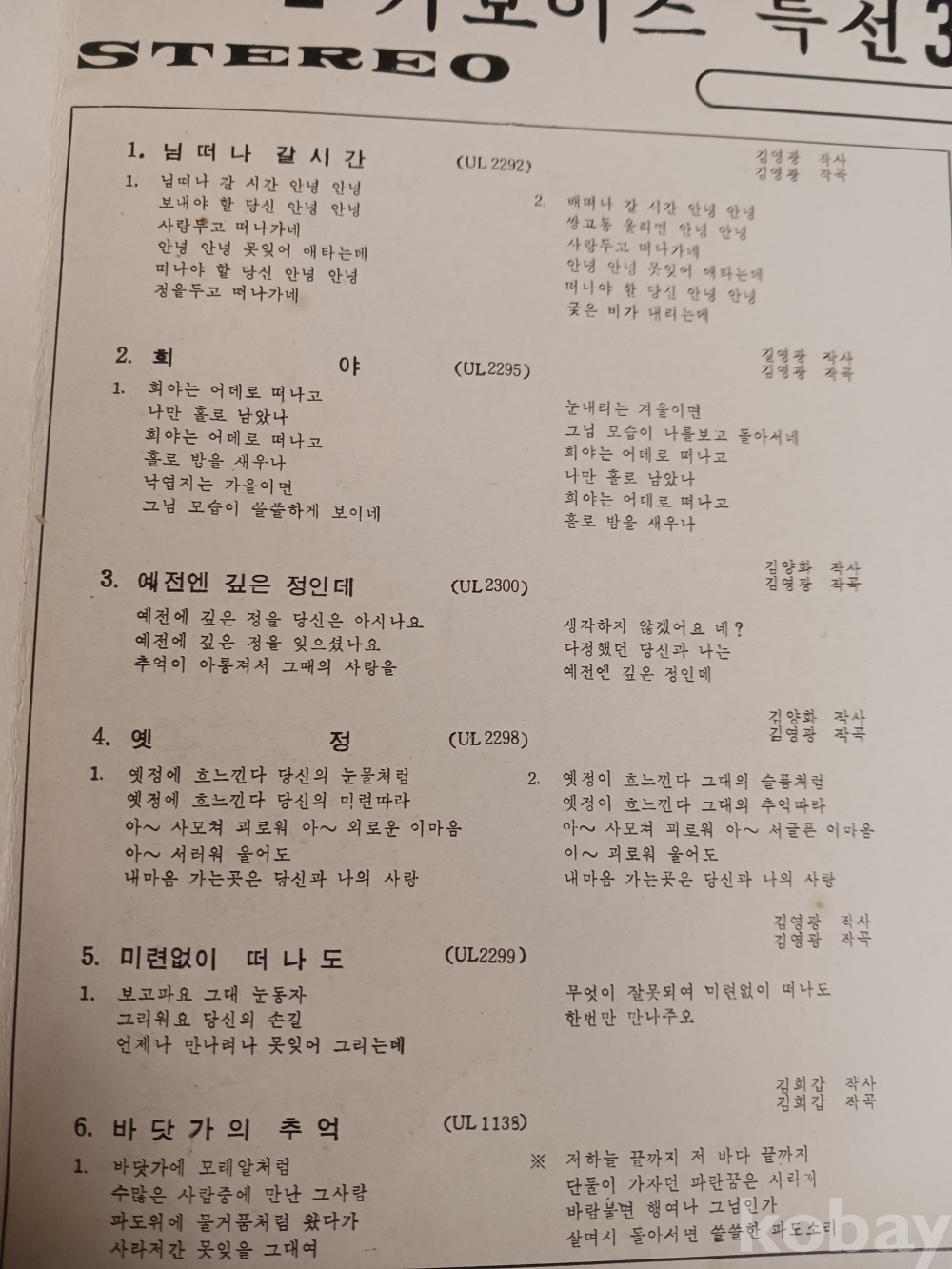| 자켓상태 | EX : 약간의 마모, 모서리 찢김 존재 | 음반상태 | EX : 재생에 영향 없는 가벼운 기스 존재 | 발매정보 | 초반 | 가사지여부 | 무 |