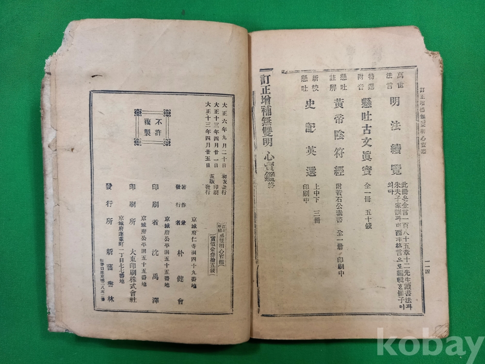 좌측 모서리 부분 전체적으로 띁김 있으나 글씨 부분은 이상 없습니다