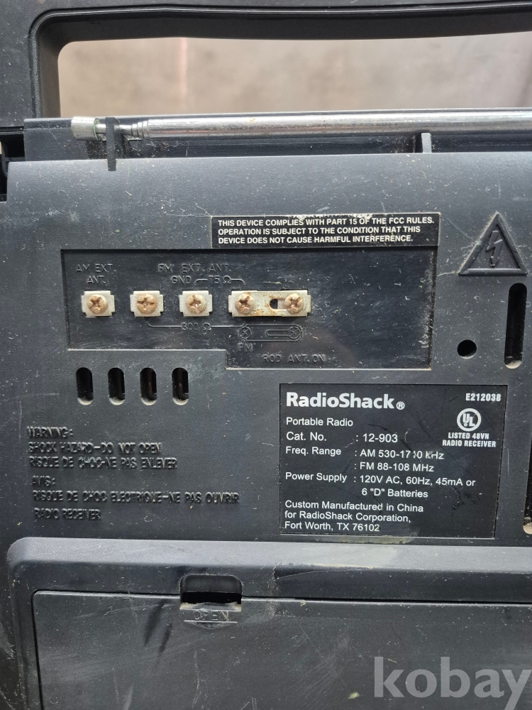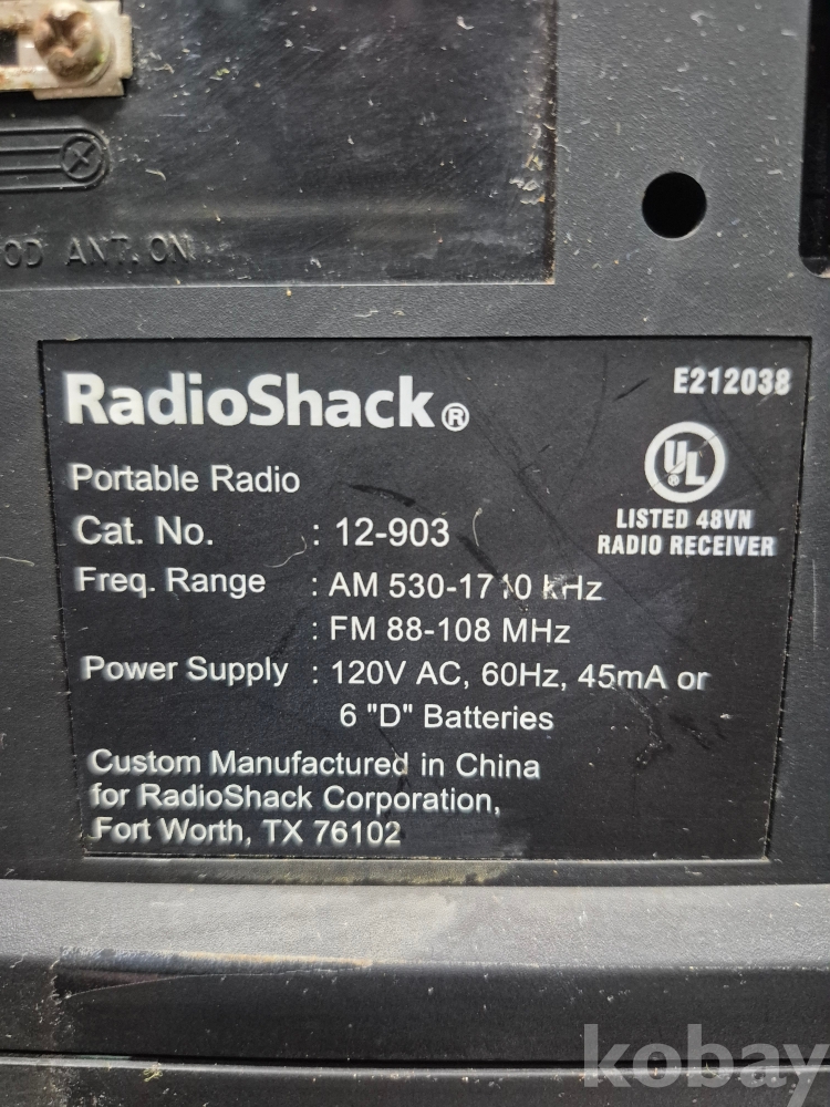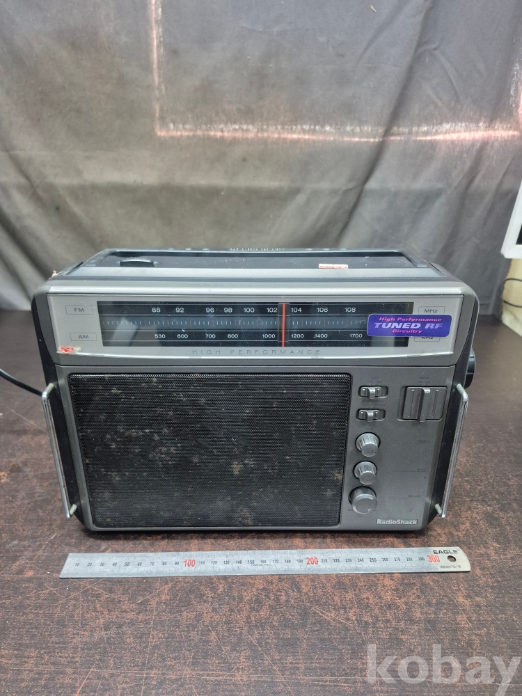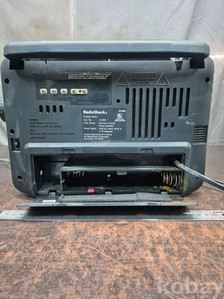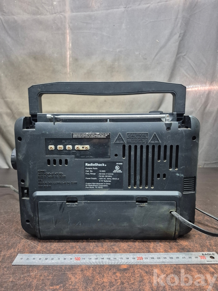 RADIOSHACK 12-903 AM/FM휴대용 라디오 주파수 범위 AM 530-17010 FM 88-108 MHZ 전원 110볼트 DC밧데리 34*11*23 전원이 들어오지 않아요