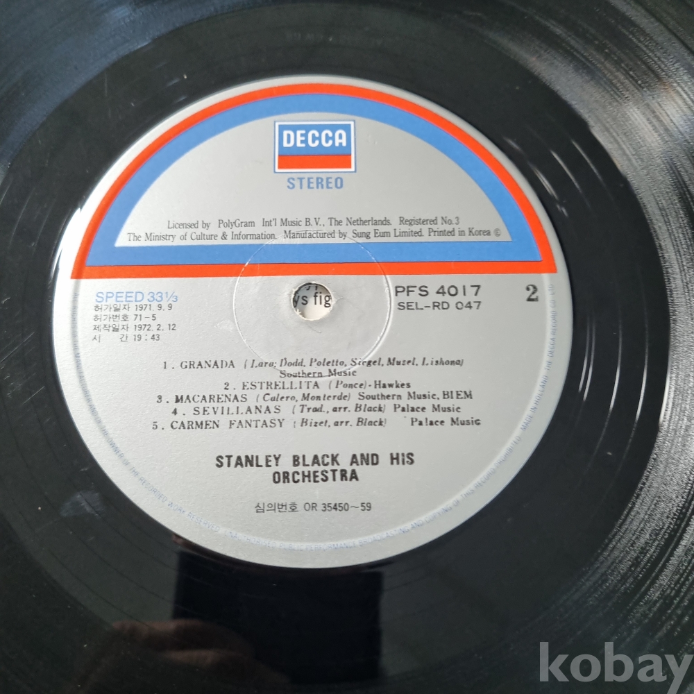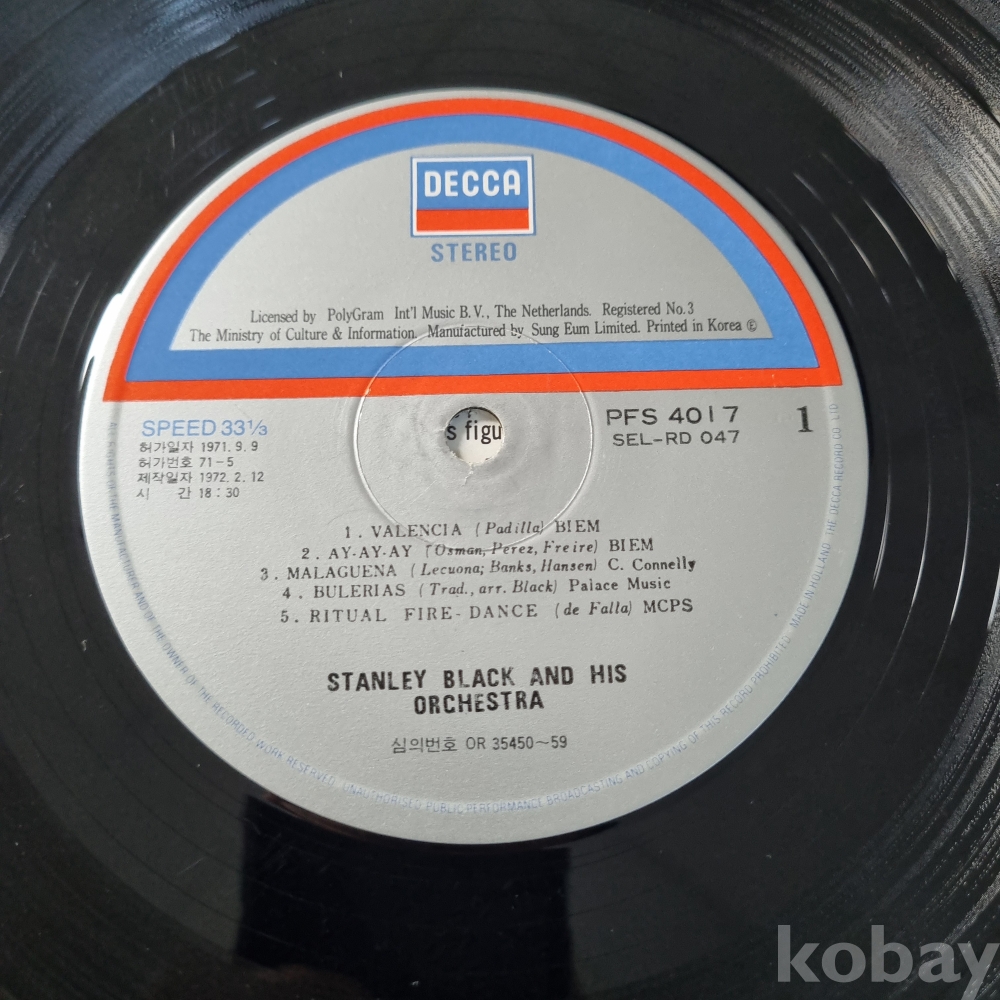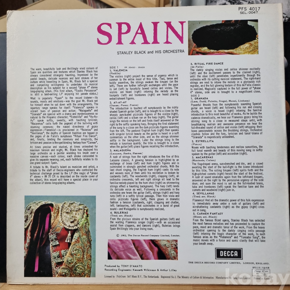 SPAIN STANLEY BLACK and HIS ORCHESTRA 성음 DECCA 1972년