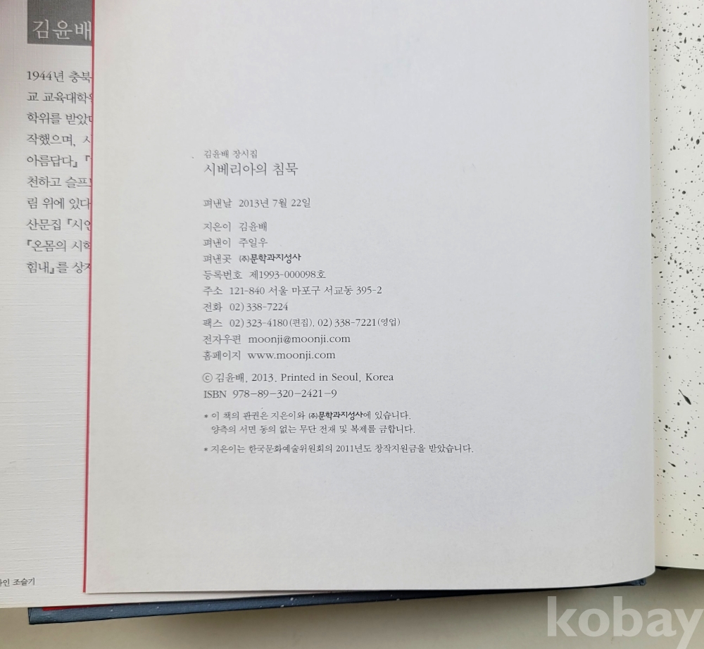 물 품 명 | 김윤배 : 장시집 / 시베리아의 침묵 / 2013년 초판 / 문학과지성사 |