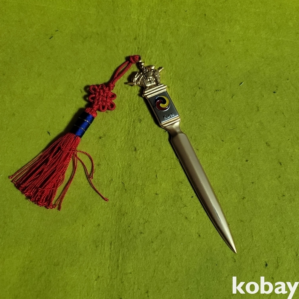 (((편지칼))) 오래전 매듭달린 우리고유의 신라 토기상모습 금속 편지칼 (KT)(금색)