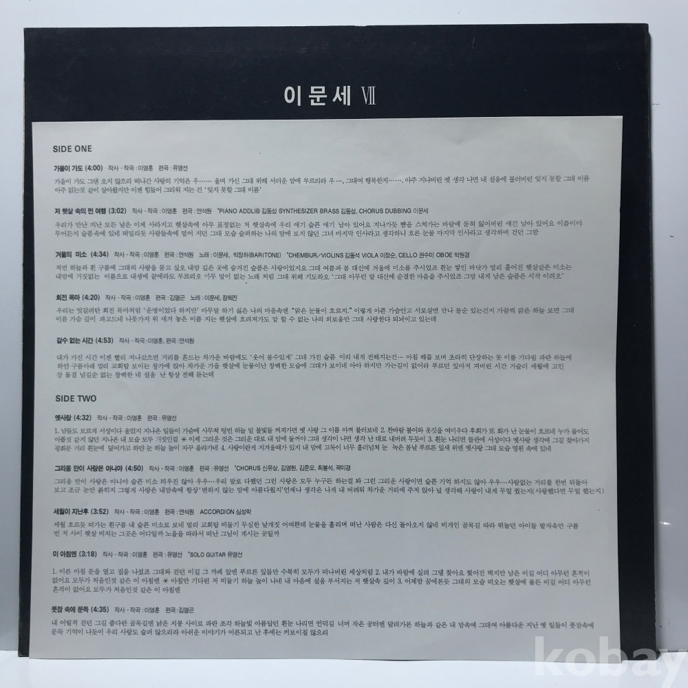 LP 30,900-78 이문세 7집 - 가을이 가도/ 옛사랑 . 91 한국 자켓 EX+ 알판 EX