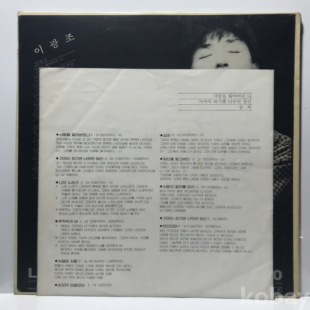 LP 30,900-199 이광조 - 사랑을 잃어버린 나 . 85 성음 자켓 EX 알판 EX