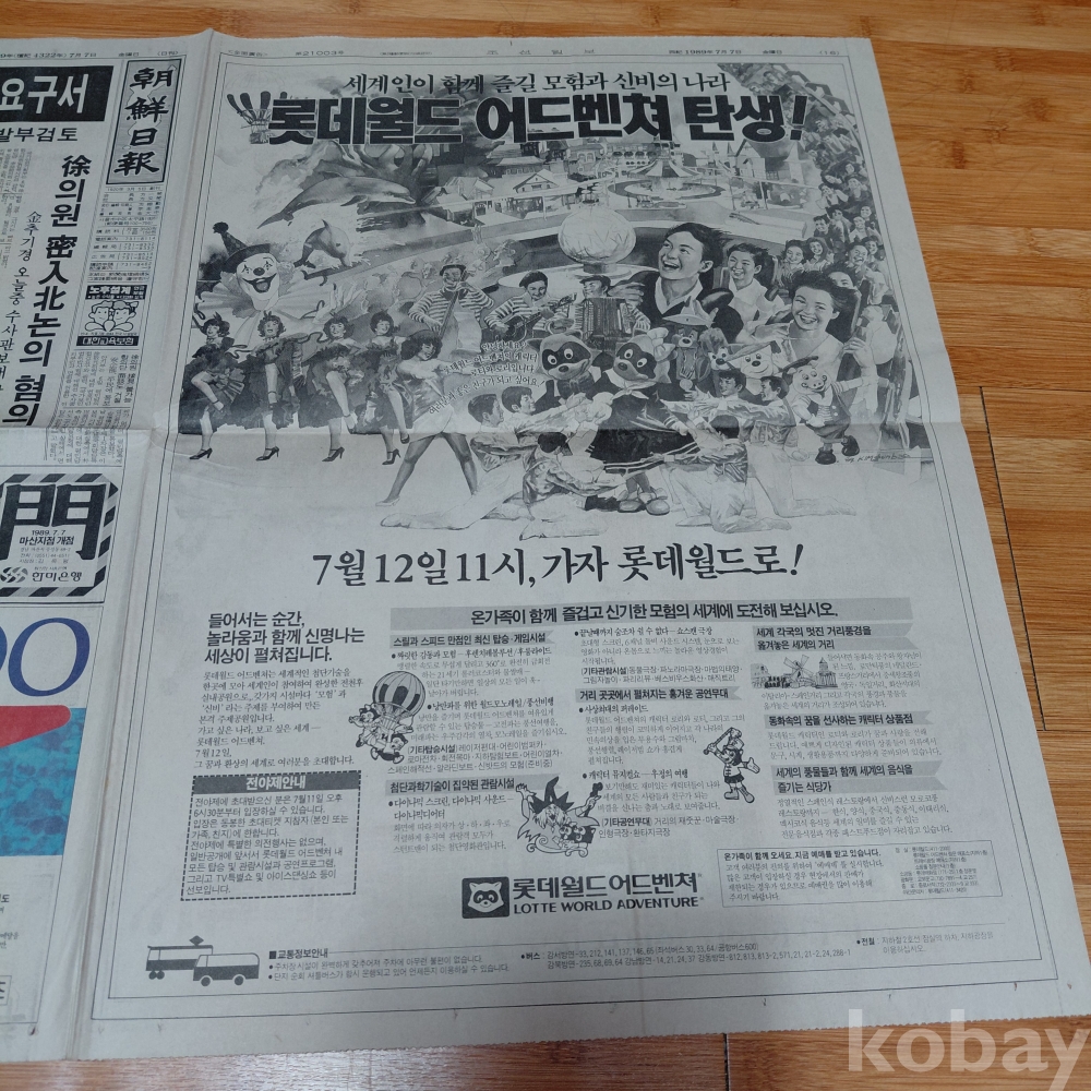 롯데월드 어드벤처 탄생 ㆍ코오롱스포츠 광고 조선일보 89년7월7일 올려드립니다