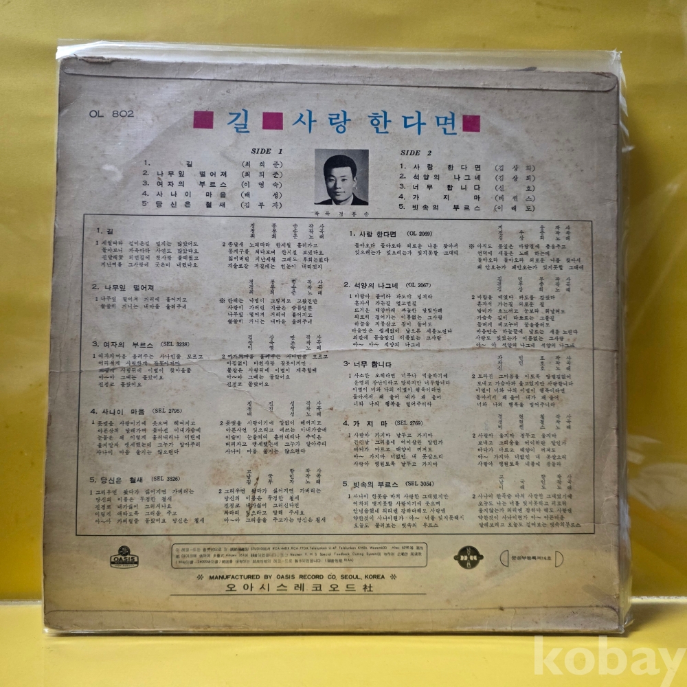 상품 설명 | Side A 1. 길 (최희준) 2. 나무잎 떨어져 (최희준) 3. 여자의 부르스 (이영숙) 4. 사나이 마음 (배성) 5. 당신은 철새 (김부자) Side B 1. 사랑 한다면 (김상희) 2. 석양의 나그네 (김상희) 3. 너무 합니다 (신호) 4. 가지마 (비퀸스) 5. 빗속의 부르스 (이래도) |
