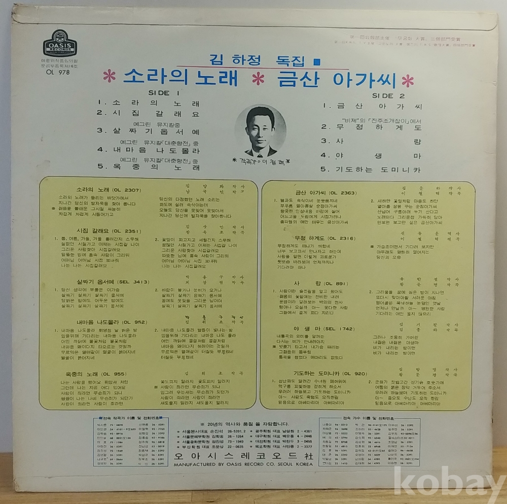 김하정 독집 (소라의 노래 / 금산아가씨) 1971년 오아시스레코드 초반