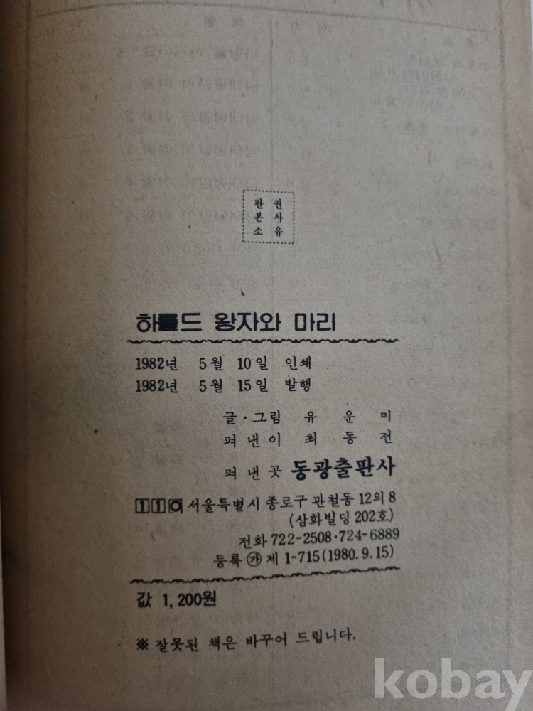 하롤드왕자와 마리 유운미 동광출판사 1982
