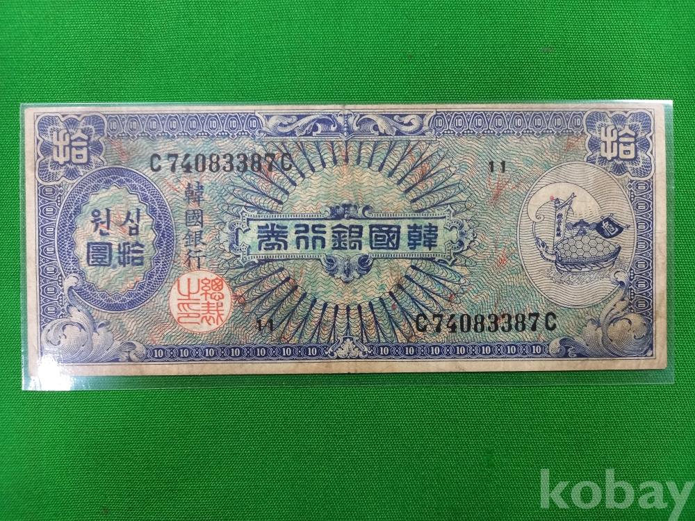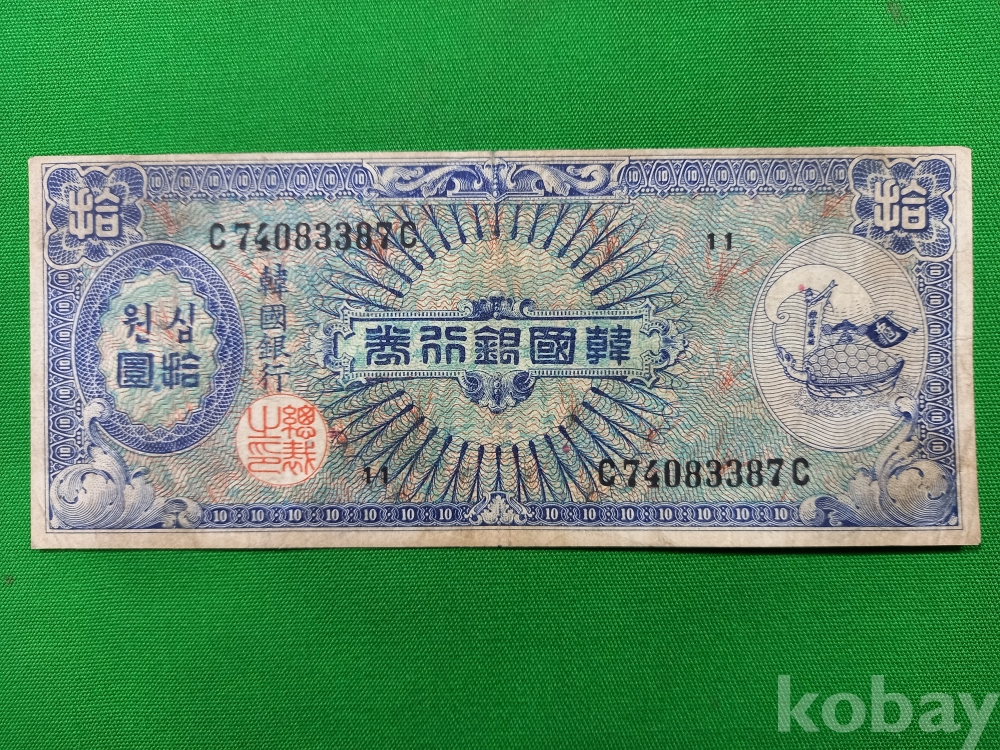 옛날지폐 / 1953년 발행 / 미제 십환 / 거북선 10환 지폐