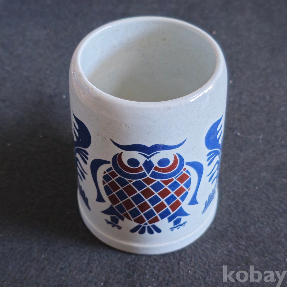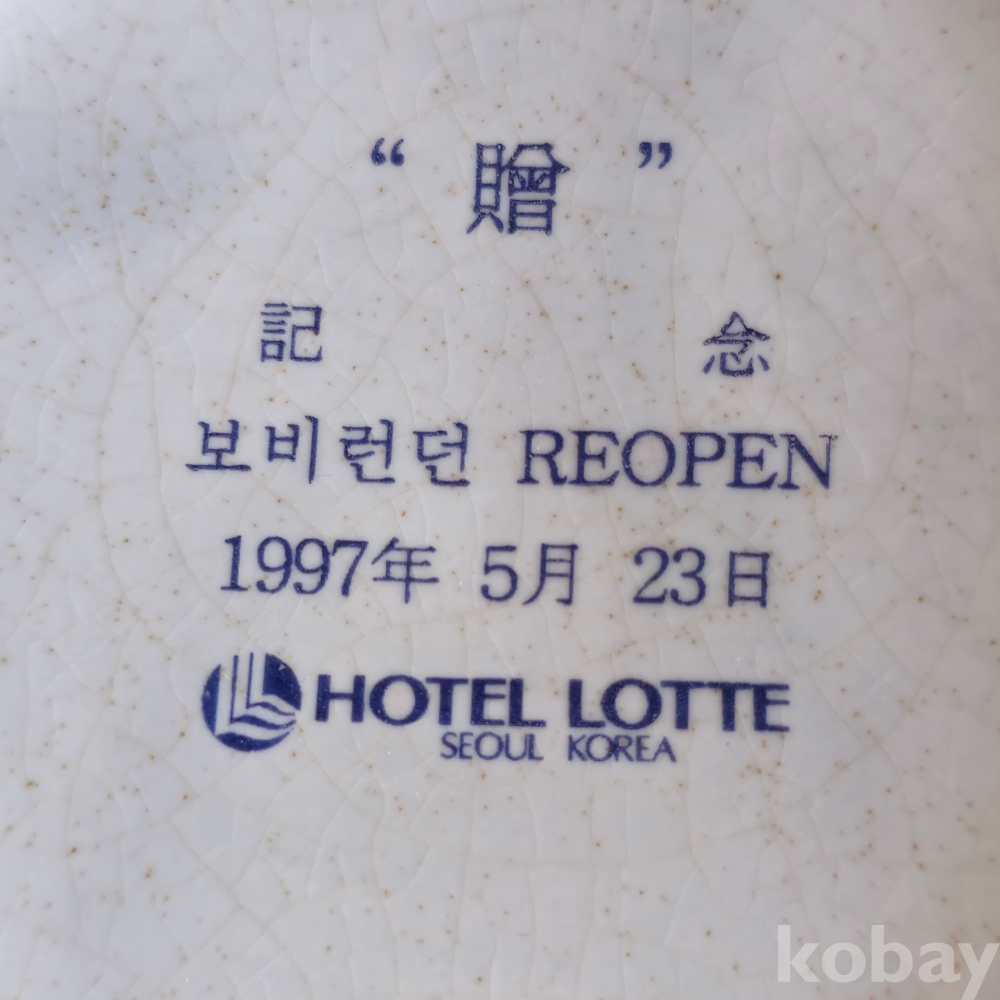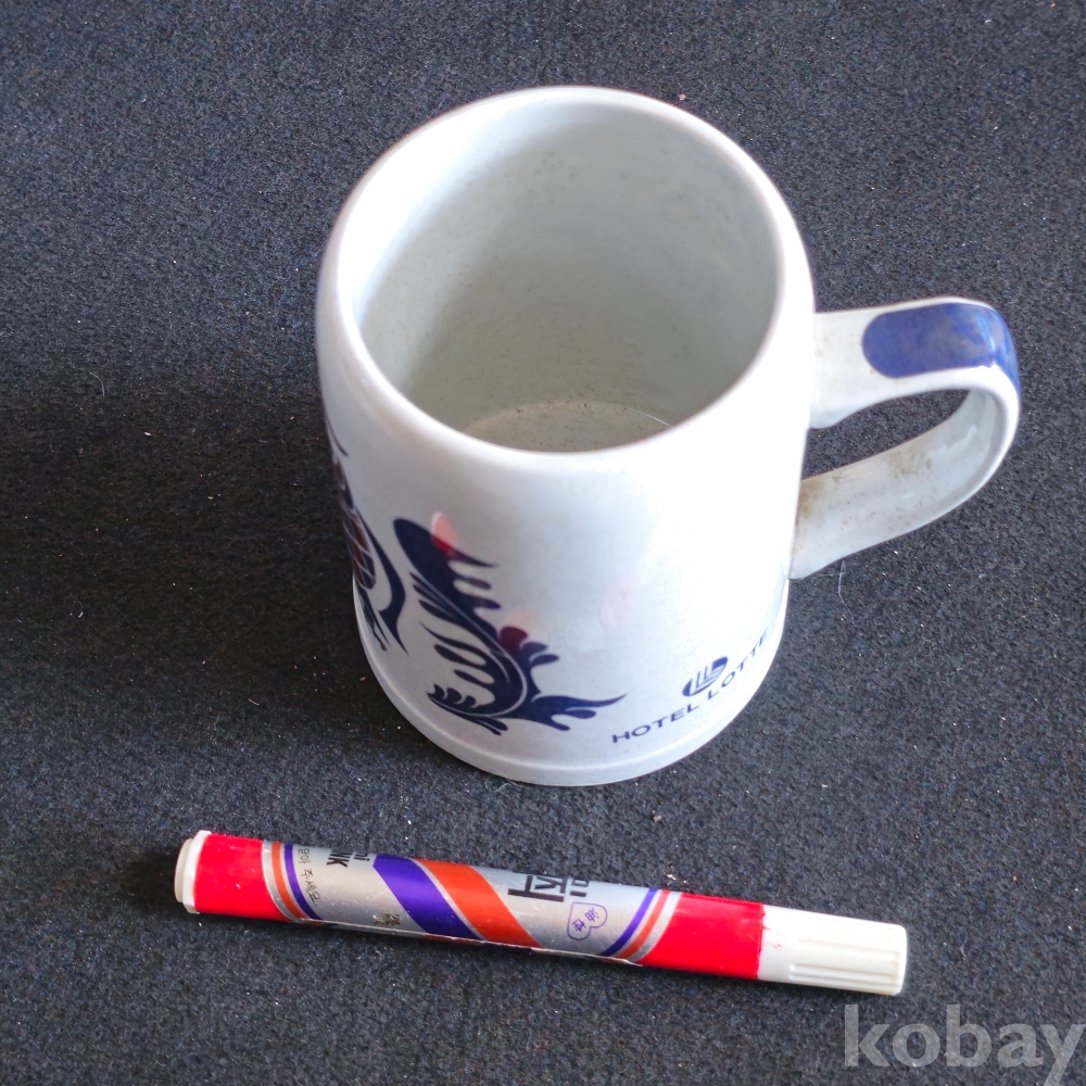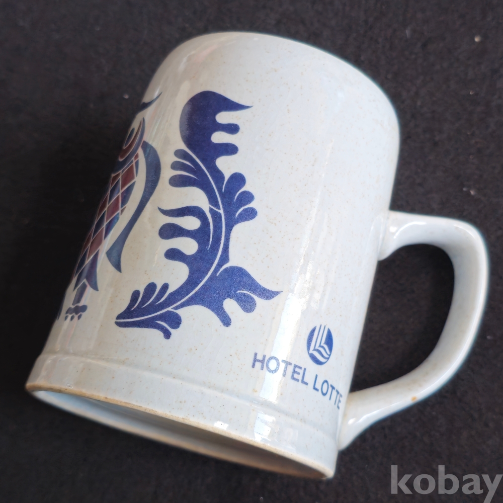 (((근현대사자료/도자기컵))) 1997년 HOTEL LOTTE 보비런던 REOPEN 記念 멋진 올빼미모습 도자기 손잡이컵
