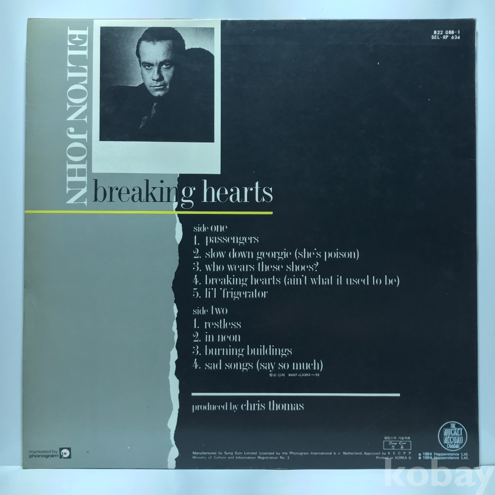 LP 300-132 Elton John 84 성음 자켓 EX+ 알판 EX