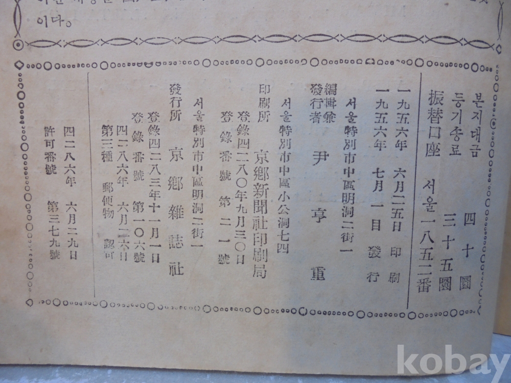 | 제조국 | 한국 | 연대 | 1945년~1959년 |