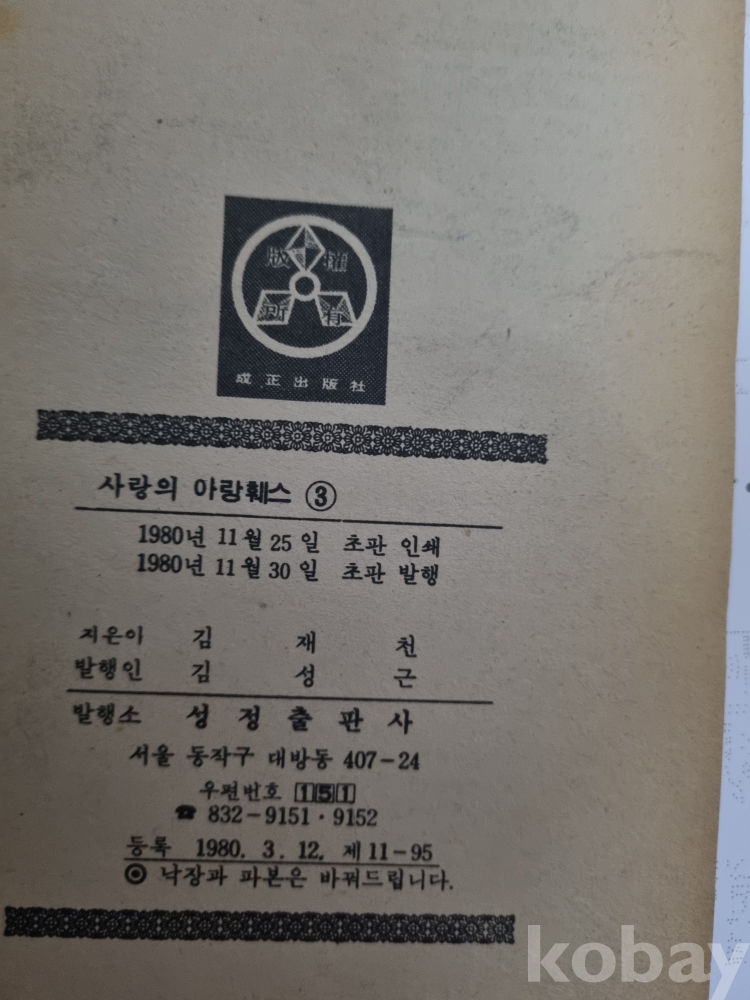 사랑의 아랑훼스3 김재천 성정출판사 1980