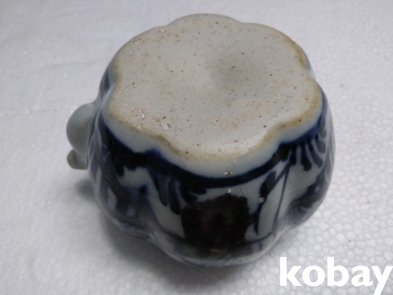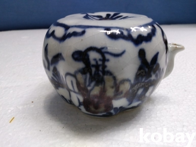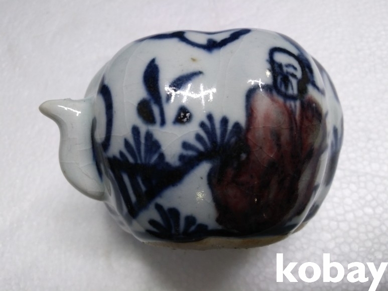호박 모양에 인물 문양이 있는 연적 도자기 입니다.