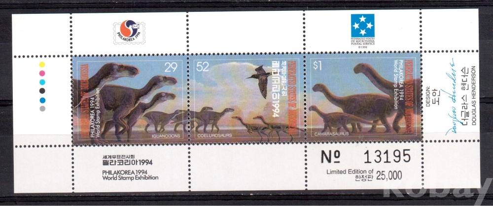 (필라코리아) Micronesia(미크로네시아) 1994 Philakorea sheet of 3 MNH