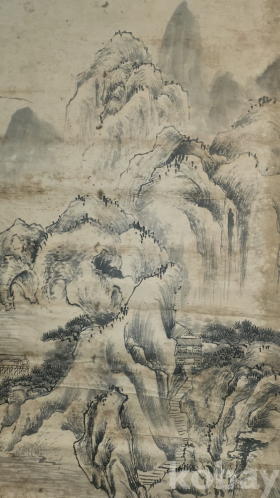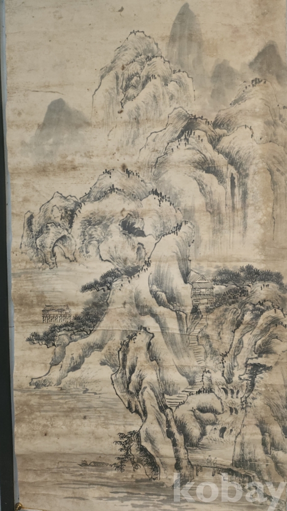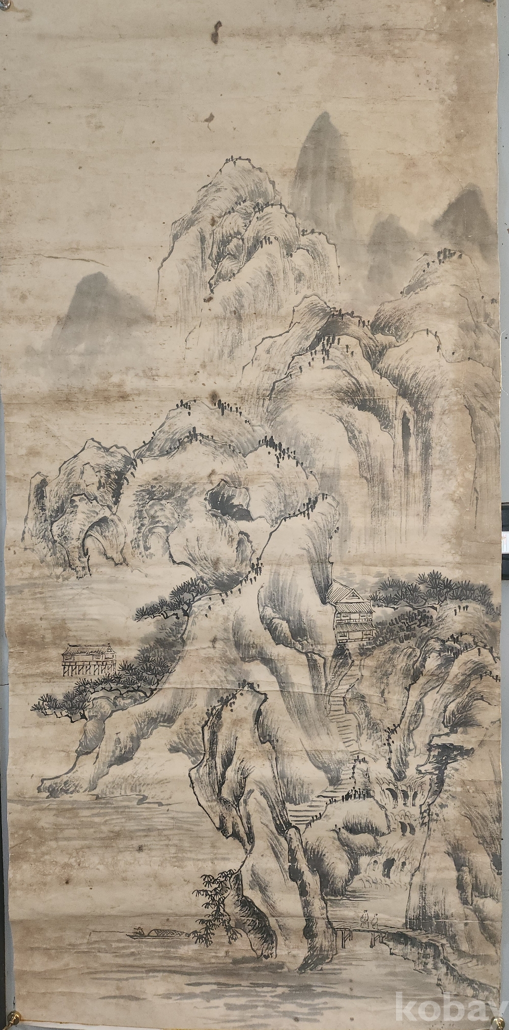 조선시대 연대 갖춘 수묵화로 크기가 큰 산수화입니다,