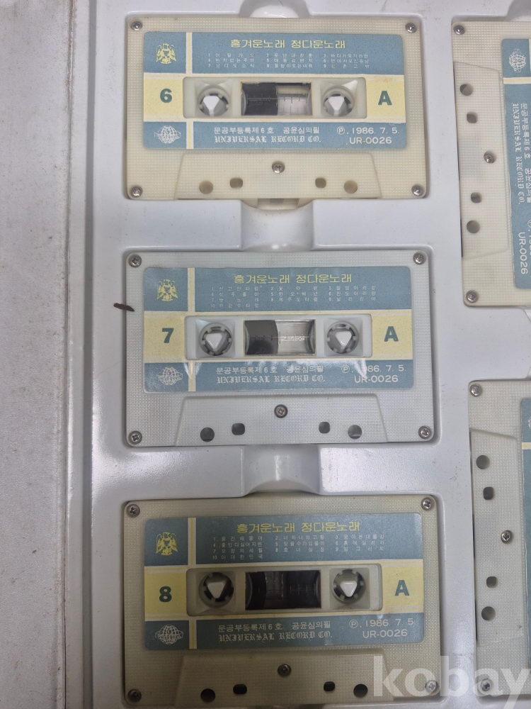 1986 년 7월 5일 유니버설 레코드사 흥겨운 노래 정다운 노래 카세트 테이프 세트 10점중 1점 분실 23*28*4